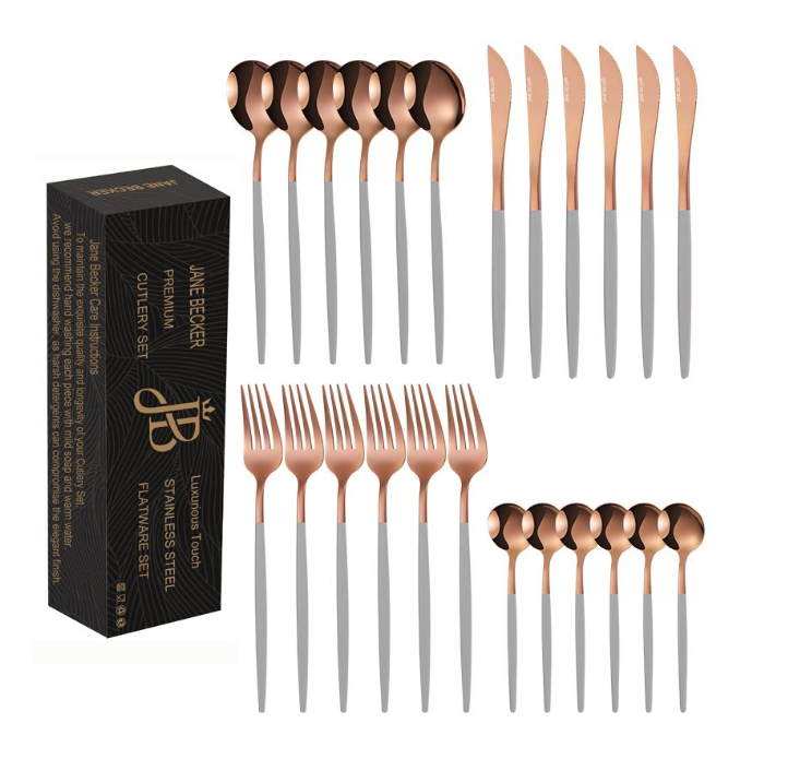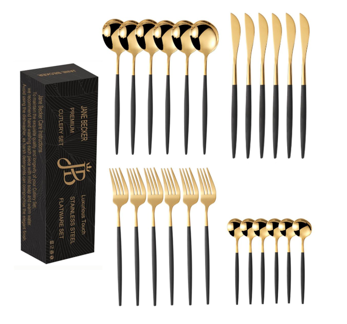 Upgrade your dining — add the Jane Becker flatware set to your cart today and enjoy luxury at every meal.