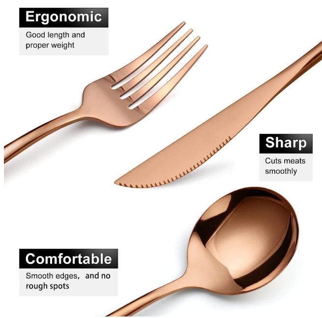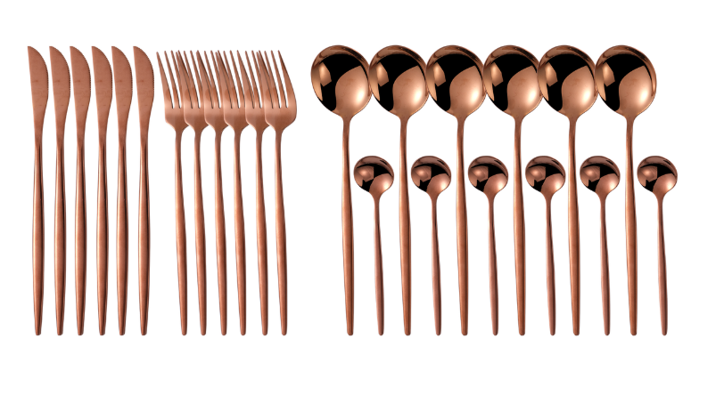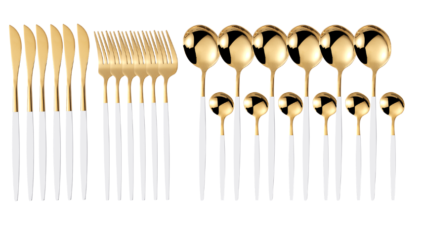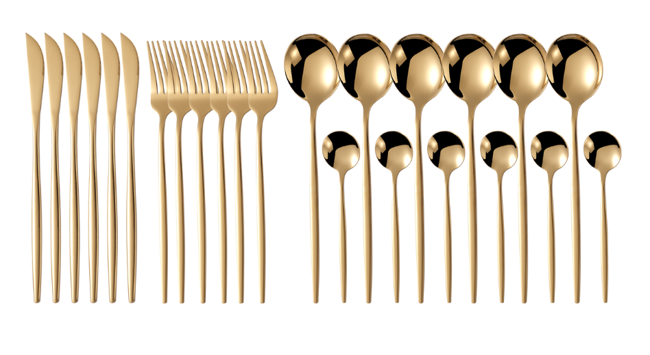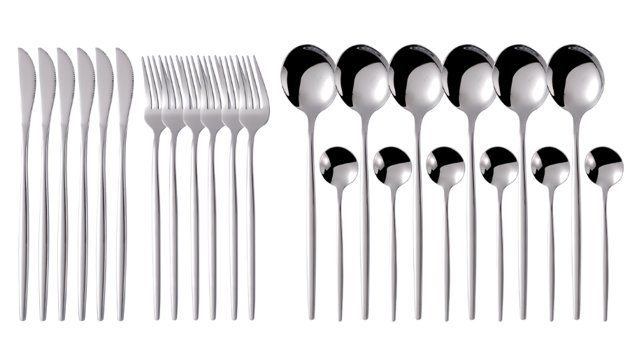 | What's in the box | 6 x Spoons • 6 x Forks • 6 x Knives • 6 x Cake Spoons |