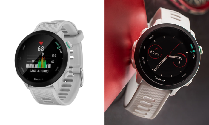 Garmin Forerunner 55 Smartwatch – Grey/White (A+ CPO) — A lightweight GPS running watch designed to help you train smarter, track progress and stay motivated.