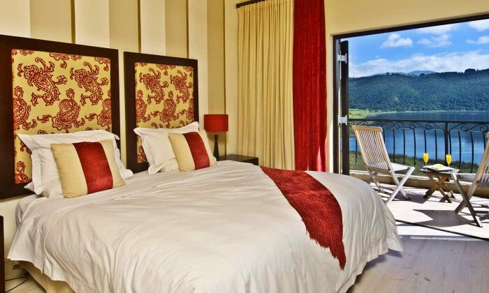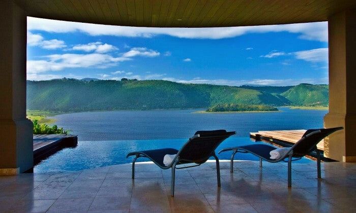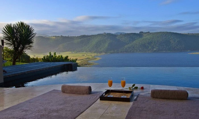 Unwind with a luxurious 2-night escape for two at Lodge on the Lake, an elegant boutique guesthouse nestled in the tranquil heart of Wilderness along the Garden Route. Overlooking the serene Island Lake and surrounded by lush nature, this idyllic retreat is the perfect getaway for couples seeking relaxation and scenic beauty.