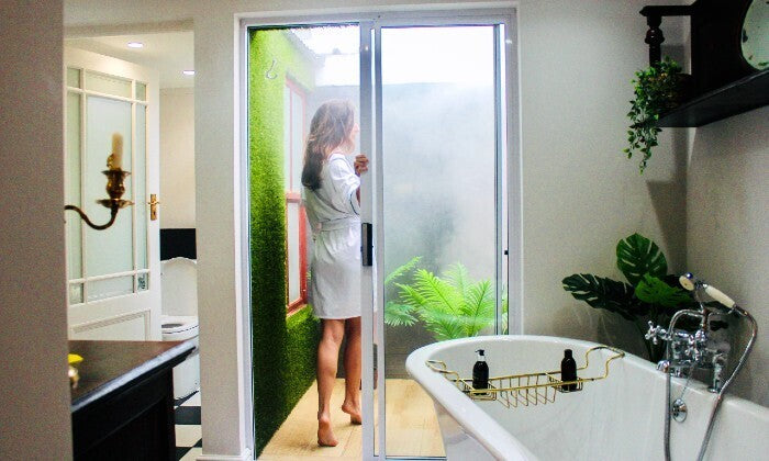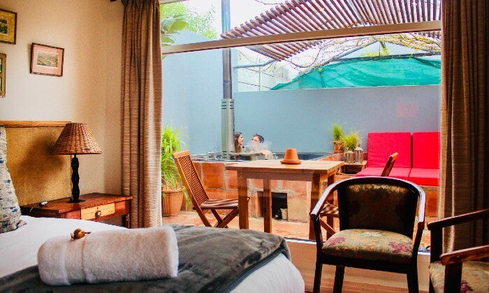 Our rooms are spacious with a private terrace and a private wood-fired hot tub.