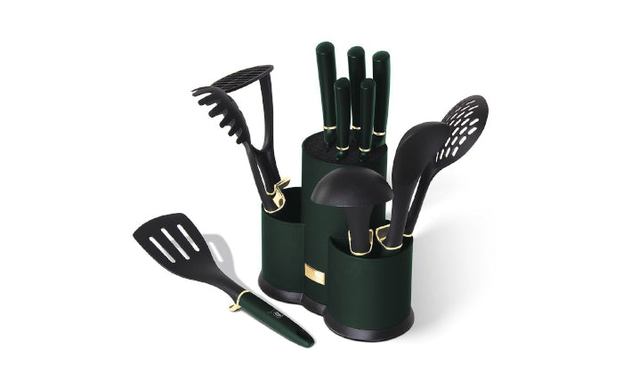 Berlinger Haus 12 Piece Knife Set with Stand and Kitchen Tools - Emerald