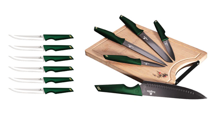 Berlinger Haus knives are designed for a comfortable, well-balanced grip, while allowing for full blade use dimples on the blade, that not only adds style, but helps to release thin slices and sticky food after slicing that food releases ability makes this kind of knife ideal for a wide range of cutting tasks.