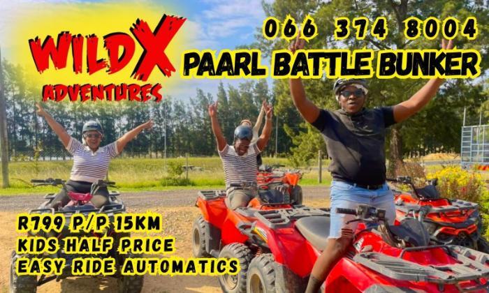 Quad biking in Paarl with WildX Adventures offers an exhilarating off-road experience for Quad Bike Ride in the scenic landscapes of Paarl, South Africa surrounded by the world-renowned vineyards of the Cape Wine Route. Perfect for all ages — beginners, kids, and families looking for a memorable outdoor experience.