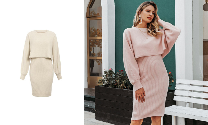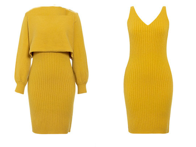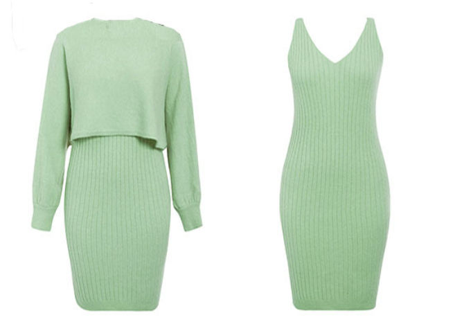 Women's Knitted 2-Piece Set – Bodycon Dress & Crop Sweater