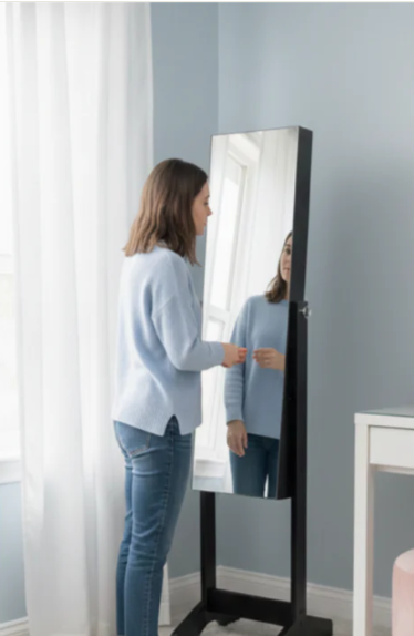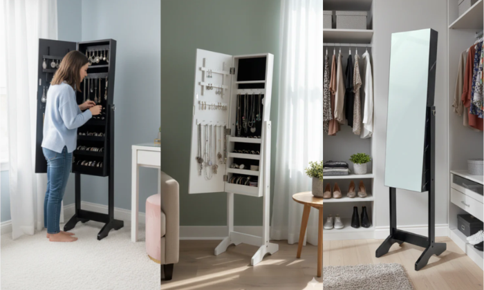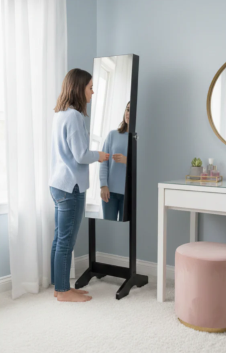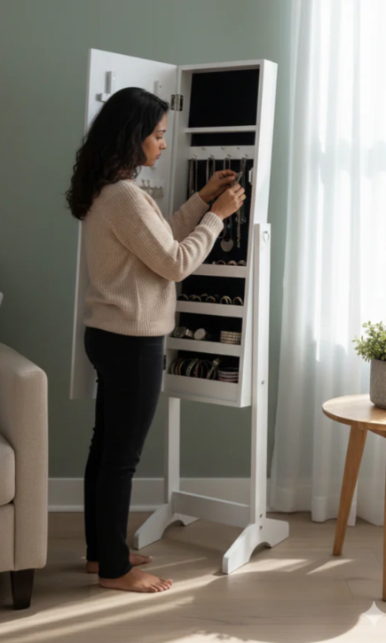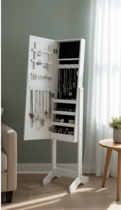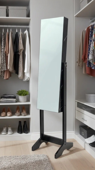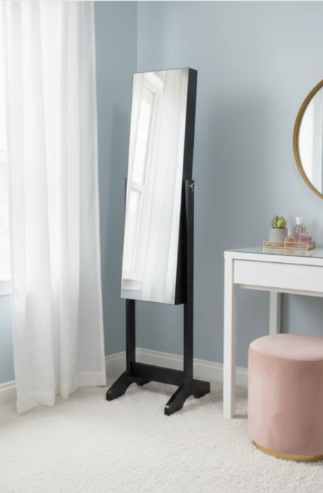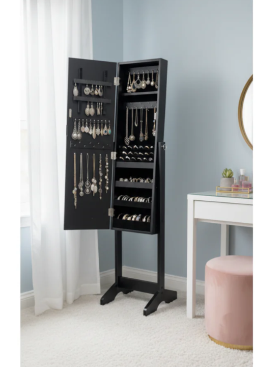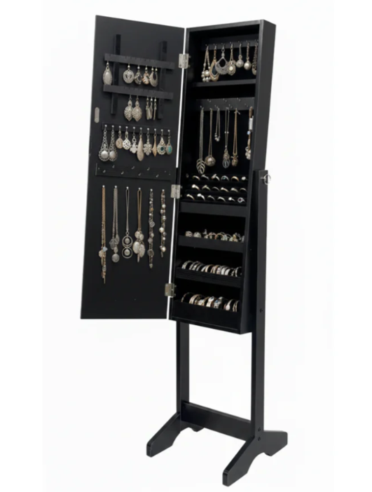 - We combine the full-length mirror and the jewelry cabinet, which not only saves space, but also is beautiful and practical. It can be used as a mirror for your clothes, or as a practical jewelry cabinet to store your everyday jewelry, providing you with a clean and spacious space.
