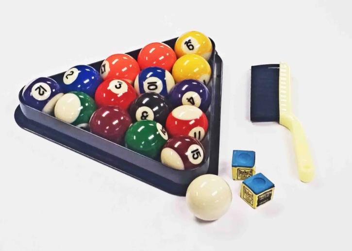 - Ready-to-Play Accessory Set → Comes with cues, balls, triangle and brush included.
