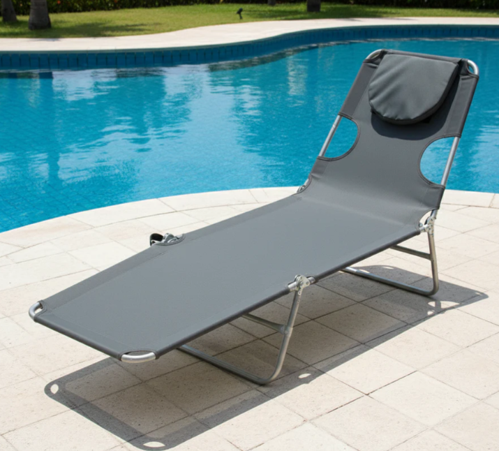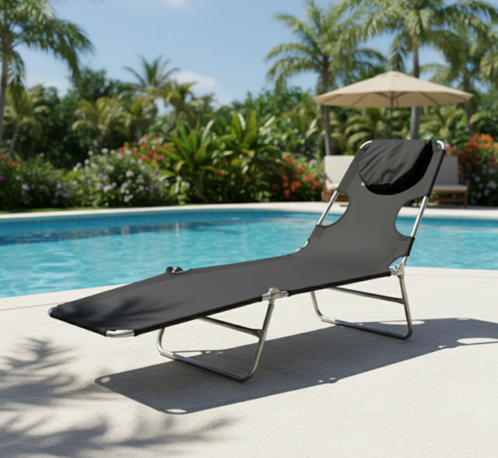 Enjoy ultimate relaxation anywhere with this foldable, adjustable sun lounger designed for comfort, durability, and easy portability.