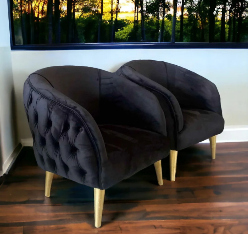 Bring modern elegance and comfortable seating to any room with the Nu Dekor Belo Button Velvet Chair – a perfect blend of style and functionality.