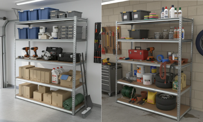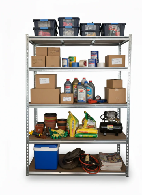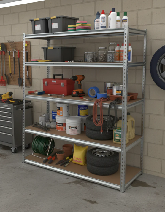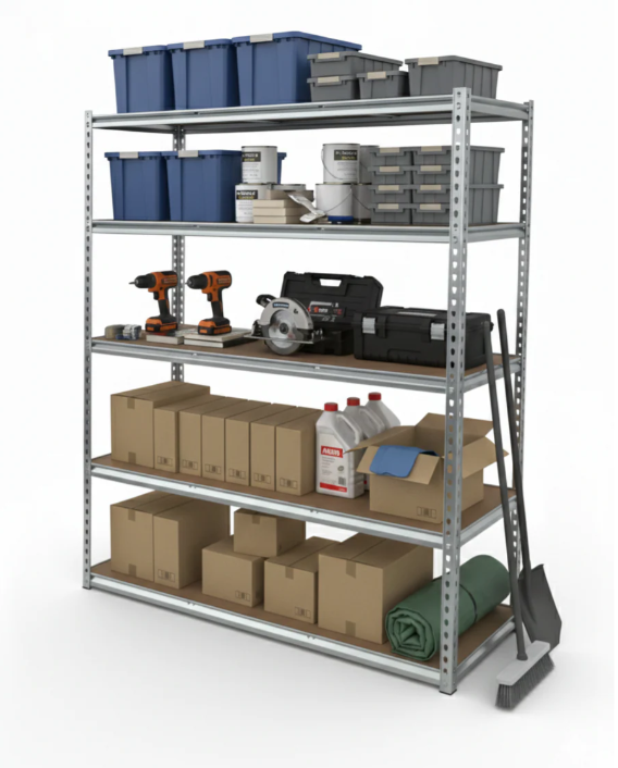 - This is a heavy-duty galvanized metal storage shelving unit with MDF boards.