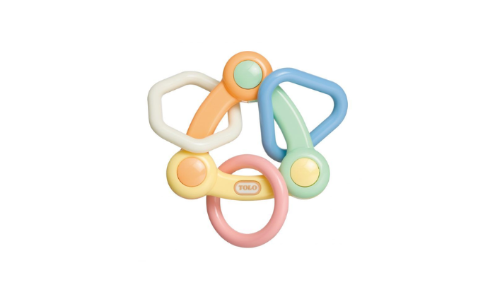 Encourage sensory exploration with the Tolo Baby Triangle Rattle.