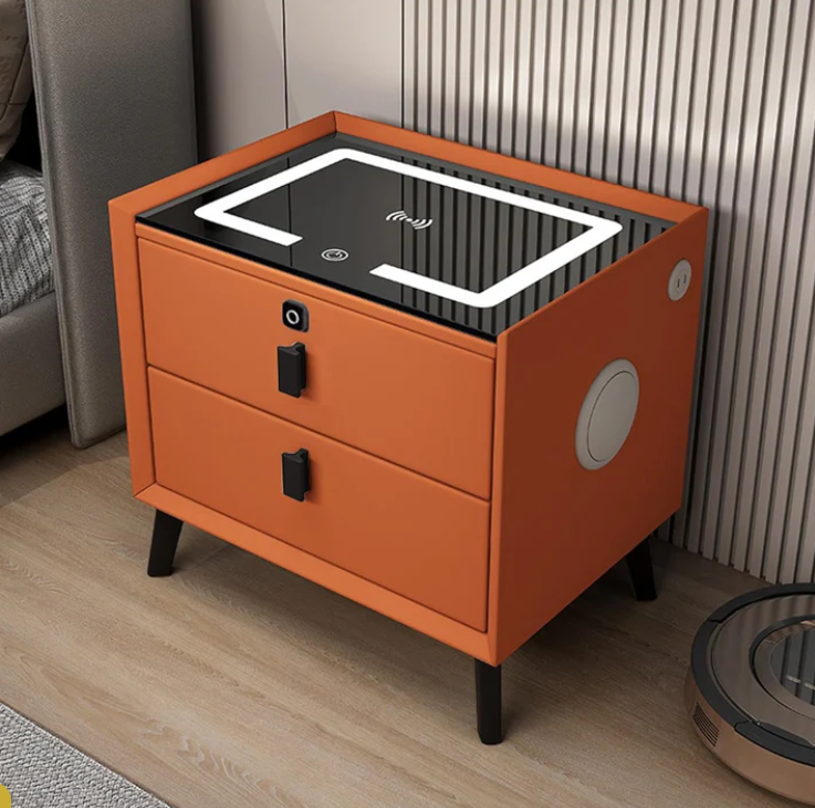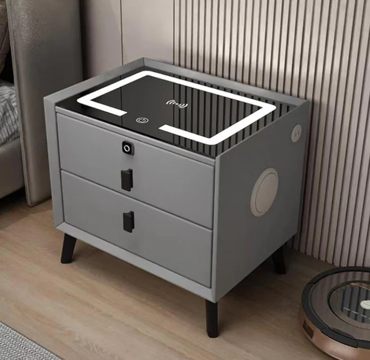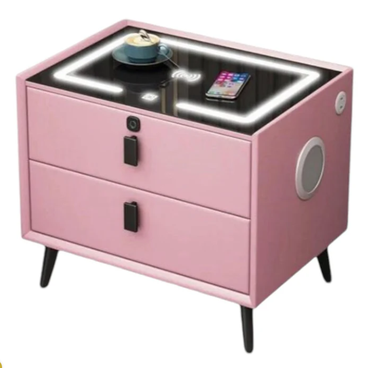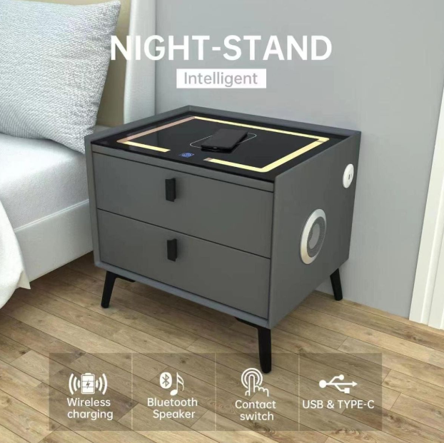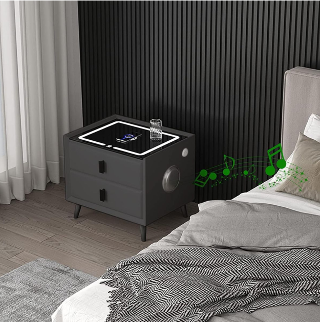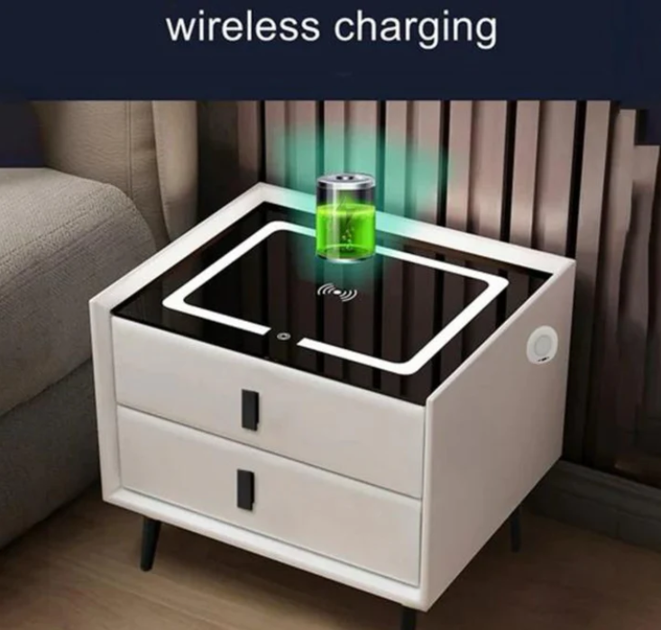 Smart LED Side Table — a multifunctional nightstand with wireless charging, Bluetooth audio, and sleek modern design for a clutter-free, connected space.
