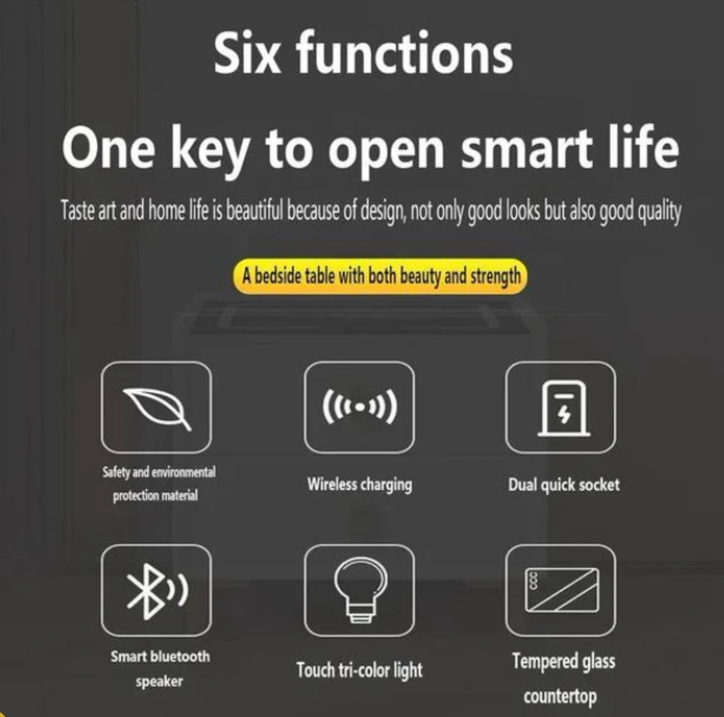 - 1 × Smart Touch-Screen Nightstand with Wireless Charging